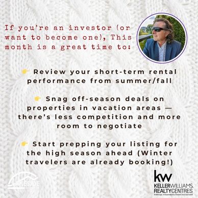 And if you're not in the investor game yet? This is when to watch the market, talk to an agent who knows the rental dynamics, and maybe pick up a property before everyone remembers they want a ski chalet or beach cottage in March.
